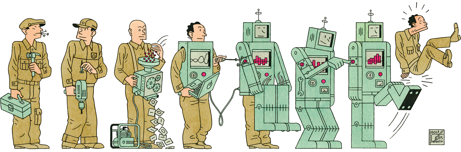 Los robots reemplazan al hombre y en este proceso el valor del trabajo humano se reducirá a una velocidad asombrosa y su valor económico llegará a cero.