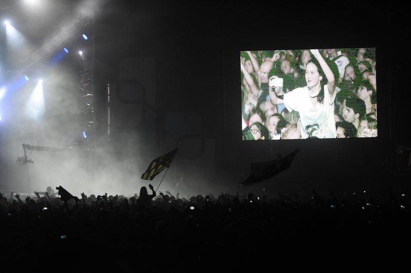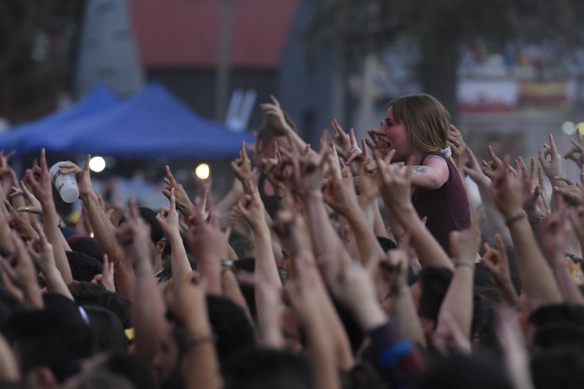 La bandera uruguaya, la de Peñarol y la de Nacional flamearon entre otras que portaban el logo de Buitres, La Vela Puerca o La Trampa. Una bengala que se le escapó a los controles de seguridad bañó al pogo con su luz rojiza. Una muleta en el aire, un joven ciego sacudiendo la cabeza aferrado a su bastón. Esas fueron algunas de las escenas para la posteridad que dejó el festival.