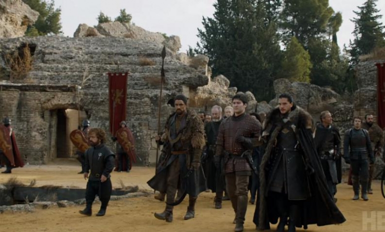 Vemos a todas las tropas arribando a lo que parece ser Desembarco del Rey, y básicamente es más un despliegue de ejército de Daenerys que otra cosa. Frente a las tropas de los Hijos de Hierro llegan los Inmaculados y los Dothraki con su inmensa mayoría, y hacen que parezca más una competencia para saber quien está mejor preparado que otra cosa.